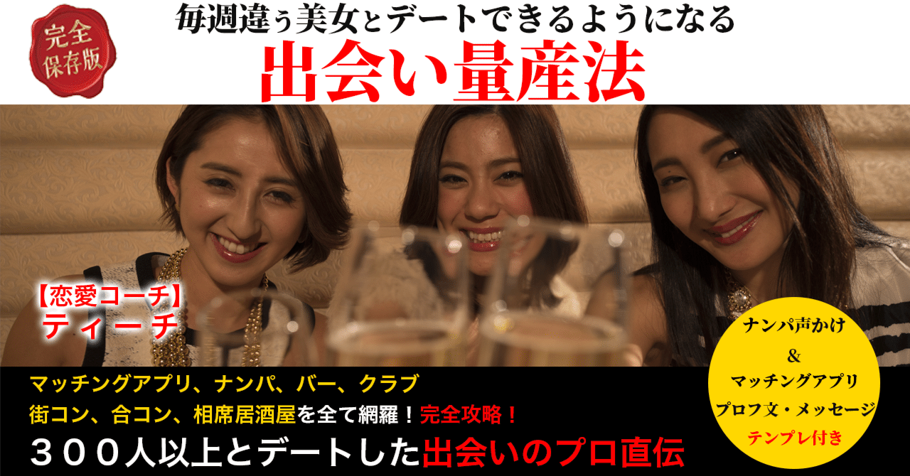 | ✅ 会社や大学に出会いがない ✅ 自分に合った、出会えるマッチングアプリを知りたい ✅ 出会いの場(合コン、街コン、相席居酒屋、バー、クラブ、ナンパ)の攻略法を知りたい ✅ マッチングアプリの返信率を約1.5倍上げるプロフ、メッセージの作成方法を知りたい |